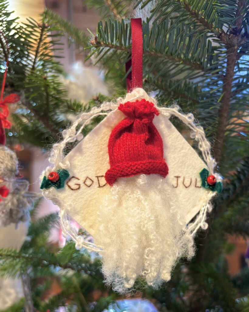 小さな贈り物やキャンディなどのお菓子、小さなブーケを入れてもいいですね。ツリーやドアにオーナメントとしても飾れます。「GOD JUL」はスウェーデン語で「メリークリスマス」という意味です。