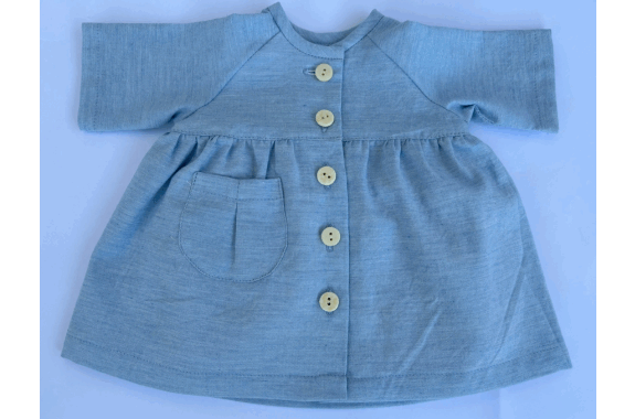 子どもがお人形と向き合ってお着換えのできる、ラグラン袖のワンピースです。