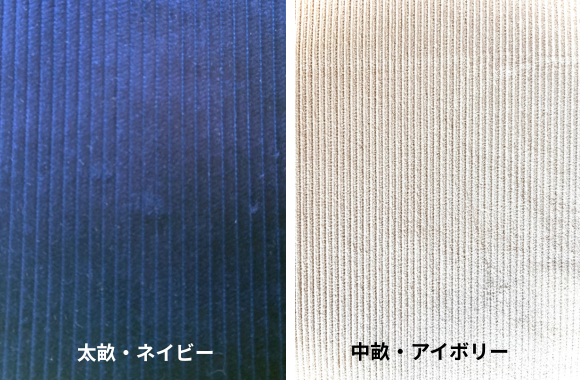 コーデュロイは、色やうねの太さが時期により多少変更がございますので、お問い合わせください。